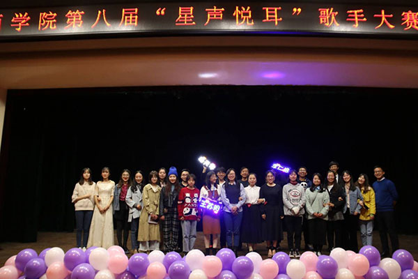 11月4日晚,商学院第八届“星声悦耳”歌手大赛决赛在学生发展中心202室隆重举行。我院团委张彩玲老师、范宝强老师、刘璐老师、王威老师、音乐学院学生会主席石佳佳同学以及往届优秀选手严小芳和张馨予同学担任本次大赛评委。
