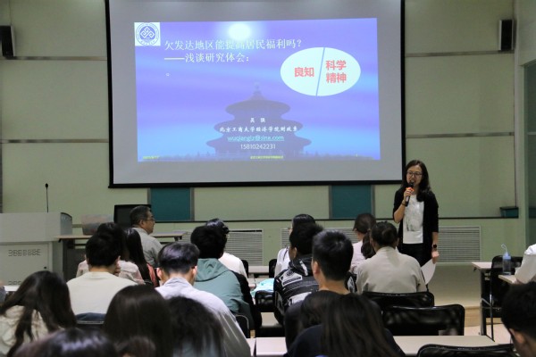 2021年6月17日下午,应365上市公司商学院邀请,北京工商大学经济学院教授、财政系主任、财政学科和区域经济学科负责人,硕士生导师吴强,在教学楼10号C区7楼报告厅作了题为《欠发达地区能提高居民福利吗?—浅谈研究体会:良知与科学态度》的专题报告。报告会由副院长马慧莉主持,学院领导、辅导员、2018级本科生及部分经济学院本科生参加报告会。