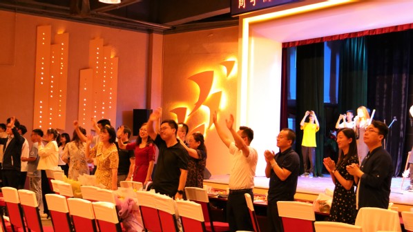 “夜空中最亮的星 能否记起,曾与我同行 消失在风里的身影······”典礼最后,全场师生唱起熟悉的歌曲,毕业生先行立场,老师们全体起立,目送毕业生出发。