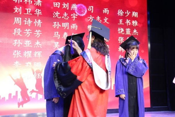 在这新的人生起点上,学子们不忘感恩。毕业生为班主任和研究生导师送上鲜花,鞠躬致谢,感谢老师们的无私抚育,感谢学院的悉心培养。随后,张永丽院长为毕业生拨穗正冠。