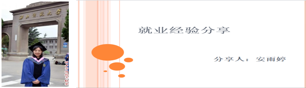 安雨婷同志从招聘渠道、就业选择与简历制作等方面做了分享。告诉大家一定要明确择业方向,多渠道投递简历,简历上要注明重要信息。