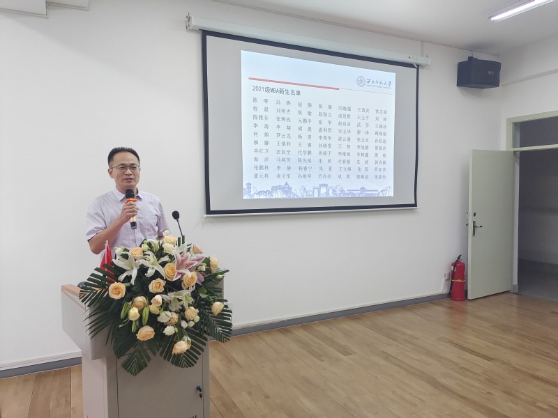 商学院副院长董青副教授以宣读学员名单的形式再次隆重的欢迎了70位MBA新生,并对各位新生提出了做好角色转变,协调好事业、家庭与学业间关系,系统深入的在理论与实践中进行反复求索等三方面的要求,希望学员们在MBA学习期间能够权衡好事业与学业,事业与家庭,理论及经验等各种关系,真正践行“管理成就梦想,知行改变人生”的商科培养目标。