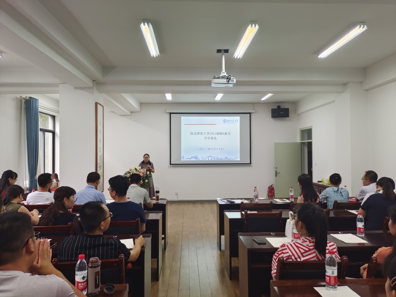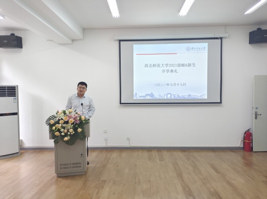 庄严的国歌声开启了典礼的帷幕,张永丽院长向正式加入365上市公司商学院的2021级MBA新生表示了衷心的祝贺和诚挚的欢迎。在向各位同学介绍了西北师大的历史、现状,商学院的师资力量及教师结构,MBA中心的师资安排及人员配备等情况后,张永丽院长希望各位MBA新生借助百年师大这个大平台,在悠久的历史和深厚的文化底蕴熏陶下,在精锐的师资力量引导下,能够不断提升自己的文化修养、知识内涵和理论素养,助力自己的管理实践技能、水平和领导力实现跨越式的提升,成为新时代卓越的管理者和优秀的领导者。