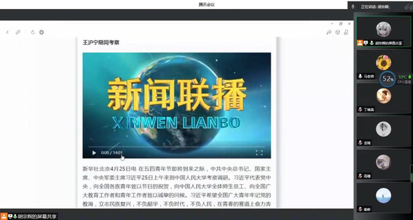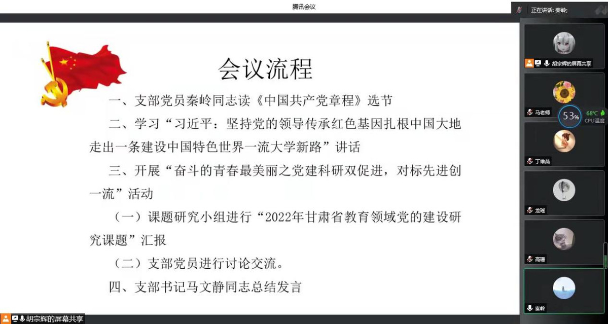 首先由支部书记带领全体党员同志一起学习《习近平:坚持党的领导传承红色基因扎根中国大地走出一条建设中国特色世界一流大学新路》讲话。