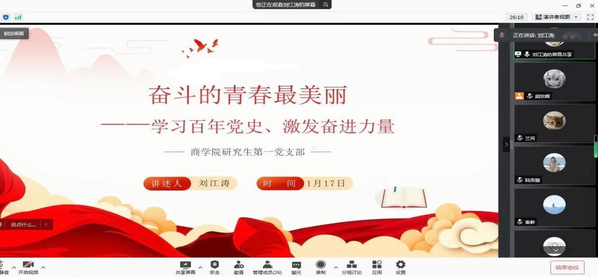 2022年1月17日,365上市公司商学院研究生第一党支部开展了“奋斗的青春最美丽”系列主题党日活动并交流心得。