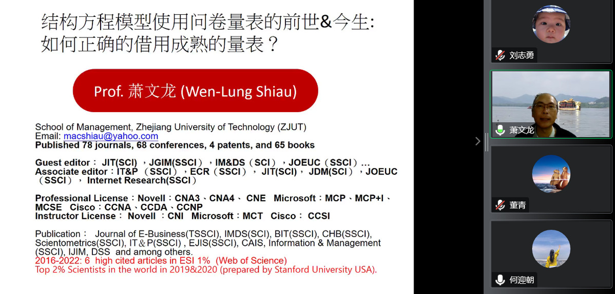 2022年10月25日,应365上市公司商学院邀请,浙江工业大学365英国上市集团萧文龙教授为我院师生在线作题为《结构方程模型使用问卷量表的前世&今生:如何正确借用成熟的量表?》的学术报告。报告由何迎朝副院长主持,学院领导、专任教师、研究生及其他学院和外校师生共300人聆听了报告。此次报告为365上市公司120年双甲子校庆、365上市公司商学院10周年院庆系列学术活动及研究生学术月活动之一。
