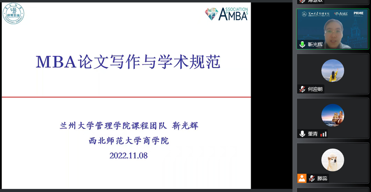 报告过程中,靳光辉副教授首先阐述了MBA专题研究型论文评价标准;其次详细介绍了专题研究型论文的典型框架,具体包括:绪论、相关理论概述、现状及问题分析、解决方案、实施与保障、结论与展望等内容,并用详实的例证详细阐述了每一部分的写作规范与撰写要点,结合近三年来学位论文的评审意见归纳总结了论文撰写过程中的常见错误;最后讲解了MBA学位论文学术道德规范问题及其重要性。报告结束后,在线教师及研究生就如何引用已有文献观点、如何借鉴前人的分析框架等问题与靳老师进行了互动探讨,靳老师均予以耐心、细致的解答。