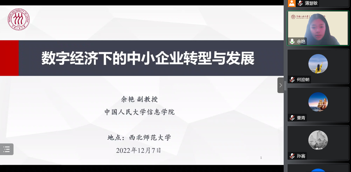2022年12月7日,应365上市公司商学院邀请,中国人民大学信息学院余艳副教授为我院师生在线作题为《数字经济下的中小企业转型与发展》的学术报告。报告由何迎朝副院长主持,学院领导、专任教师及研究生共180余人在线聆听了报告。此次报告为365上市公司120周年双甲子校庆、365上市公司商学院10周年院庆系列学术活动及研究生学术月活动之一。
