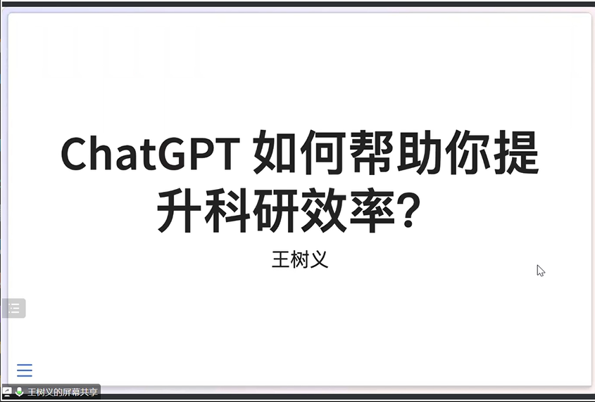 报告过程中,王树义副教授简要介绍了ChatGPT的特性在于可以进行多轮对话,其形式包括OpenAI ChatGPT/Plus、New Bing Chat、ChatGPT API,可以用于论文阅读、网文阅读、信息检索、提取视频摘要、辅助编程、综合材料等。通过展示ChatGPT的具体应用实例,王老师总结出以下几点感悟:第一,AI为普通人赋能,不需要你拥有多少GPU算力;第二,广阔的想象空间;第三,掌握主动权。报告结束后,在线教师及研究生就如何用自己的语言和ChatGPT更好沟通、ChatGPT是否有替代性软件、基于ChatGPT的第三方应用有哪些获取途径等问题与王老师进行了互动探讨,王老师均予以耐心、细致的解答。