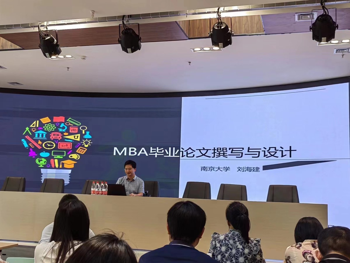 2023年7月17日,应学院邀请,南京大学商学院刘海建教授在专家楼报告厅为2023级MBA新生作题为《MBA毕业论文撰写与设计》的学术报告,报告由副院长和苏超主持,案例中心李承晋老师,MBA中心老师和MBA学员130多人参加了报告。此次报告也是新生入学教育的重要内容之一。