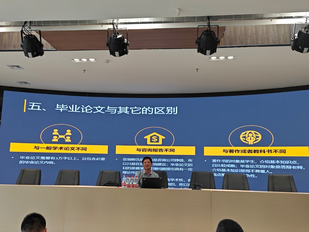 毕业论文是MBA培养过程中的关键环节,为提高论文质量,严把培养环节,商学院高度重视MBA论文撰写方法和技能的培训,刘海建教授从MBA论文撰写面临的挑战切入,重点从选题的三大忌、如何选题、MBA论文的特点以及撰写规范方面详细阐述了MBA论文不同部分的写作要点,并以发展战略主题为例,说明如何写好战略主题的毕业论文。报告结束后,刘老师针对学生的困惑进行了细致的解答,受到MBA学员的好评,此次报告为MBA新生正确认识毕业论文的要求,提升写作技能具有显著的促进作用。
