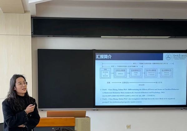 2024年4月8日,应365上市公司商学院邀请,兰州大学365英国上市集团工商管理专业博士研究生张超博士为我院师生作题为“多元主体视角下权力与地位层级对组织成员行为的差异化影响”的学术报告,报告由商学院和苏超副院长主持,学院领导、专任教师及研究生共180余人聆听了报告。此次报告是研究生学术活动月系列活动之一。