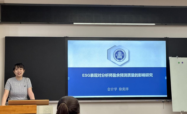 徐奕洋同学以2011-2012年沪深 A 股上市公司数据作为研究样本,探究上市公司 ESG表现对分析师盈余预测偏差产生的影响。通过机制检验表明上市公司 ESG 表现能够通过发挥“信息效应”与“治理效应”来影响分析师盈余预测偏差。