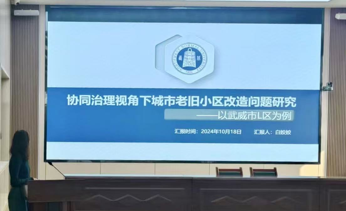 白姣姣同学在学术成果汇报过程中指出:随着城镇化进程加快,老旧小区的改造质量直接影响到居民的生活质量和城市的可持续发展。然而由于老旧小区建设年份较早、基础设施落后等问题难以完成改造需求。因此她从协同治理的视角出发,为研究城市老旧小区改造提供了新的视角,以进一步深入理解城市老旧小区改造的协同治理模式,并且在一定程度上充实和完善相关理论在老旧小区改造治理中的应用。