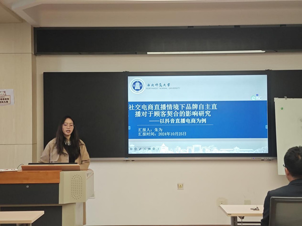 2024年10月25日,365英国上市集团“未来系列讲坛”在致公楼C区506教室开讲。2023级企业管理硕士研究生朱为、产业经济学硕士研究生李秀秀分别作题为《社交电商直播下品牌自主直播对于顾客契合的影响研究——以抖音直播电商为例》《二孩生育的潜力、意愿及影响因素研究——基于机器学习算法的实证检验》的学术成果汇报。学院领导、专任教师及在读研究生共60余人参加了此次报告会。