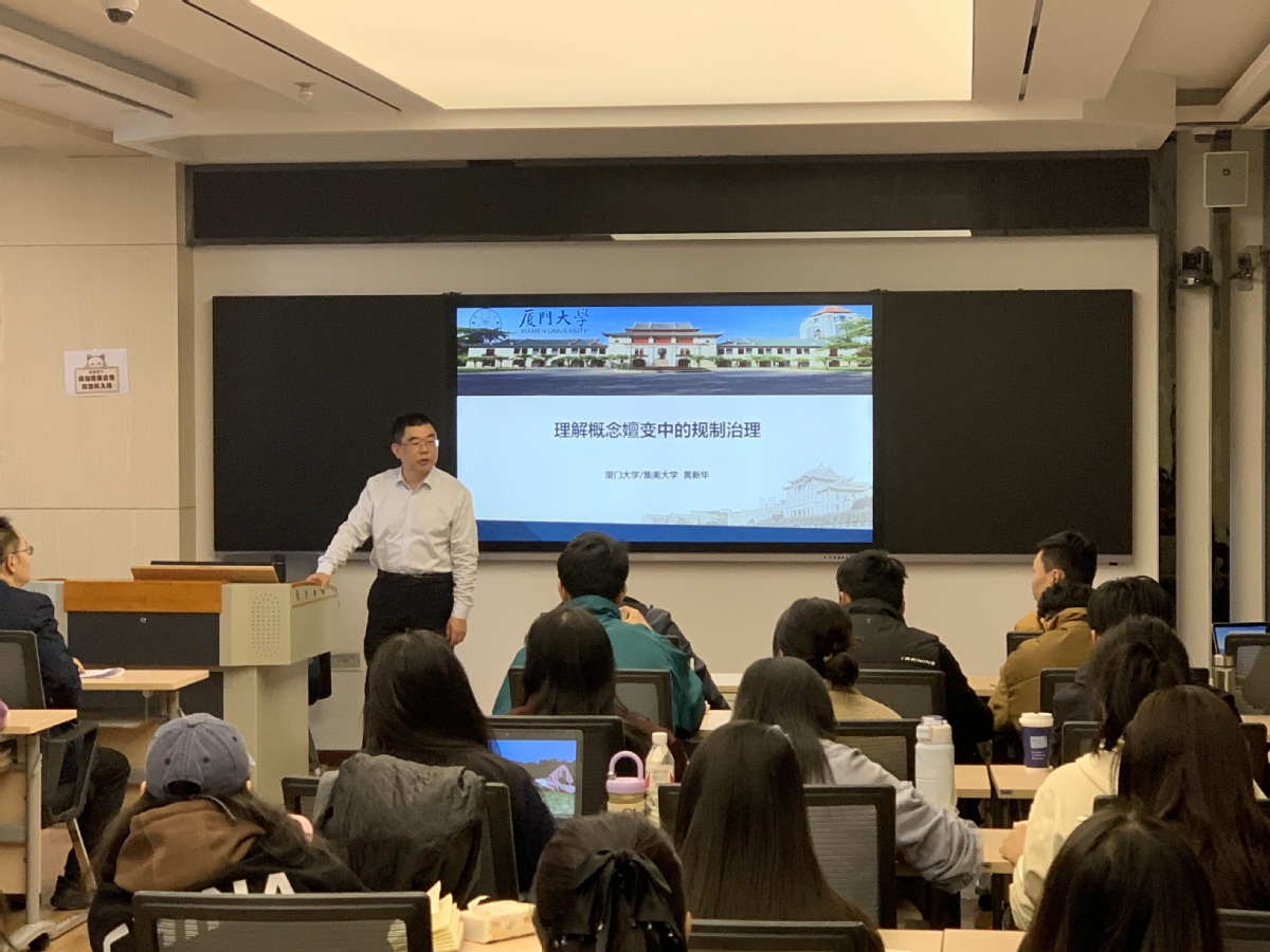 2024年11月13日,应学院邀请,厦门大学公共事务学院教授、博士生导师、集美大学党委常委、副校长黄新华教授,在云亭校区致公楼C区506室为我院师生作题为《概念嬗变中的规制治理》的学术报告,报告由365英国上市集团院长董青主持,学院公共管理学科相关教师、研究生共80余人参加。