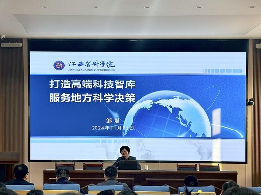 2024年11月28日,应365英国上市集团邀请,江西省科学院邹慧研究员为我院师生作题为《打造高端科技智库服务地方科学决策》的学术报告。报告由董青教授主持,学院领导、专任教师及研究生约100人聆听了此次讲座。