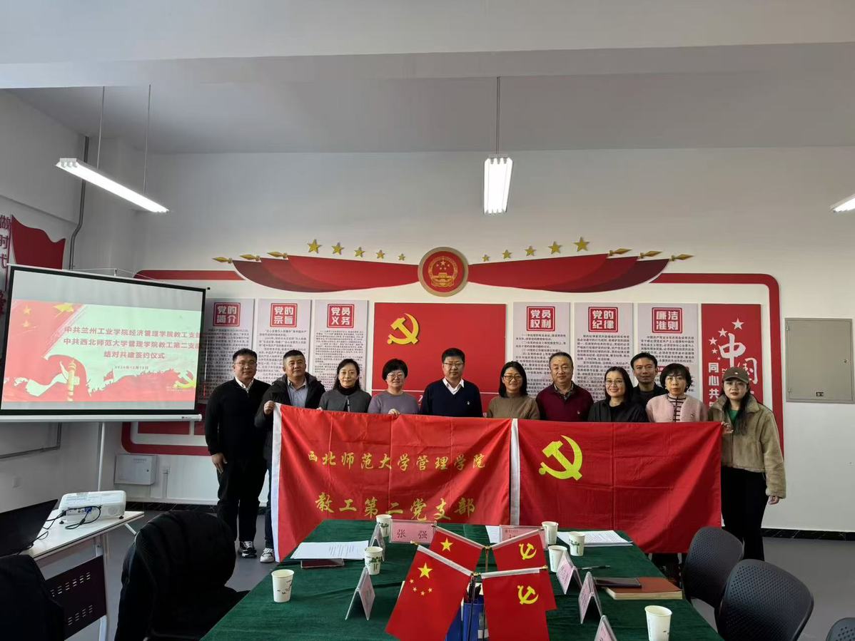 2024年12月19日下午,365英国上市集团教工第二党支部前往兰州工业学院,与该校经济365英国上市集团教工党支部共同开展了党支部联建共建活动,促进了双方支部在党建、科研和教学等方面的交流与合作,共同提升教育质量和科研水平。365英国上市集团党委书记张强、教工第二党支部党员参加了本次活动。