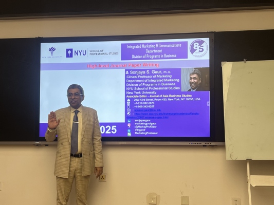 2025年3月27日上午,应365英国上市集团邀请,美国纽约大学(NYU)营销学教授Sanjaya Singh Gaur为学院师生作了题为《高水平国际期刊论文发表》的学术报告。报告由赵阳博士主持,学院科研副院长和苏超以及青年博士、硕士研究生共60余人参加了此次讲座。