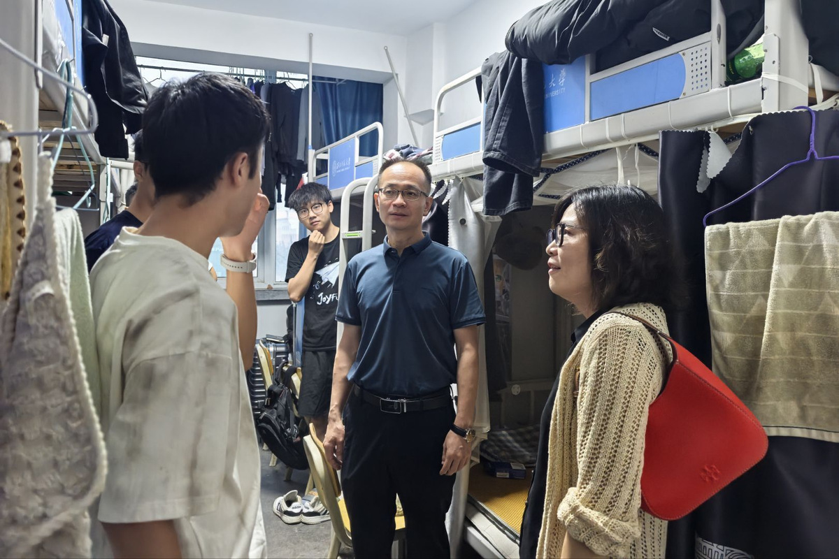 走访过程中,学院领导与同学们进行了亲切深入的交流。“假期过得怎么样?”“新学期课程有没有压力?”“家乡是哪里的?”“返校路途还顺利吗?”一句句暖心的话语拉近了师生间的距离。老师们细致询问了同学们暑假期间的学习实践和生活情况,细心叮嘱同学们新学期学会调整生活节奏,合理安排作息时间,全身心投入到学习及生活中。同时还提醒同学们要注意用电、人身与财产安全,保持寝室卫生整洁,营造平安有序的宿舍文化。