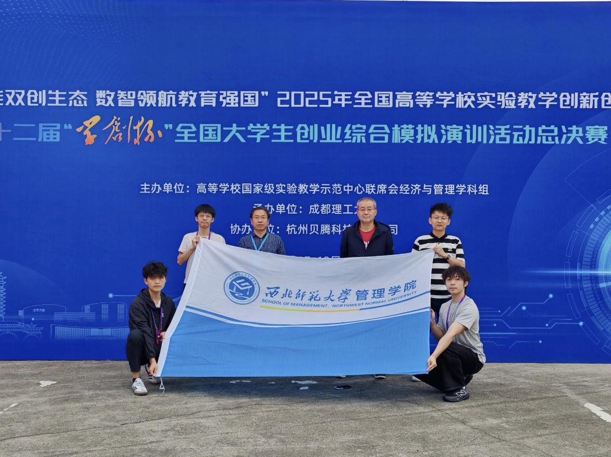 本届学创杯赛事自2025年3月启动以来,我院结合学科专业特色,积极组织队伍参赛。我院“知术尚理”代表队在历经省赛、全国半决赛的层层选拔后,成功晋级总决赛。10月16日,由学院王山军、狄湛老师带队赴成都理工大学参赛,我院学子在总决赛中凭借科学严谨的运营策略、敏锐的市场洞察与高效协作脱颖而出,最终斩获创业综合模拟赛项全国一等奖。