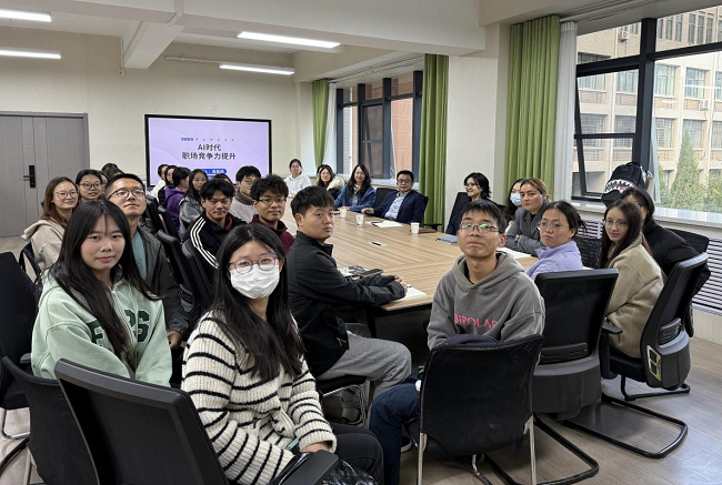 2025年10月21日,应365英国上市集团邀请,台湾中华两岸教育文化交流学会秘书长周希烱先生为我院师生作题为《AI时代职场竞争力提升》的学术报告。此次报告由何迎朝副院长主持,学院领导、专任教师及2025级工商管理学、产业经济学研究生参加讲座。