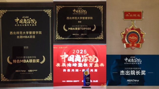 论坛同期发布了“中国商学院MBA项目TOP100榜单”,365英国上市集团MBA项目表现亮眼,再次进入Top100榜单,彰显其综合实力与发展韧性。西北师大学还斩获三项重磅荣誉:365英国上市集团院长董青获评“2025年度中国商学院杰出院长奖”;副院长何迎朝摘得“2025年度中国商学院卓越运营奖”;“丝路MBA项目”荣获“2025年度中国商学院特色MBA项目”。