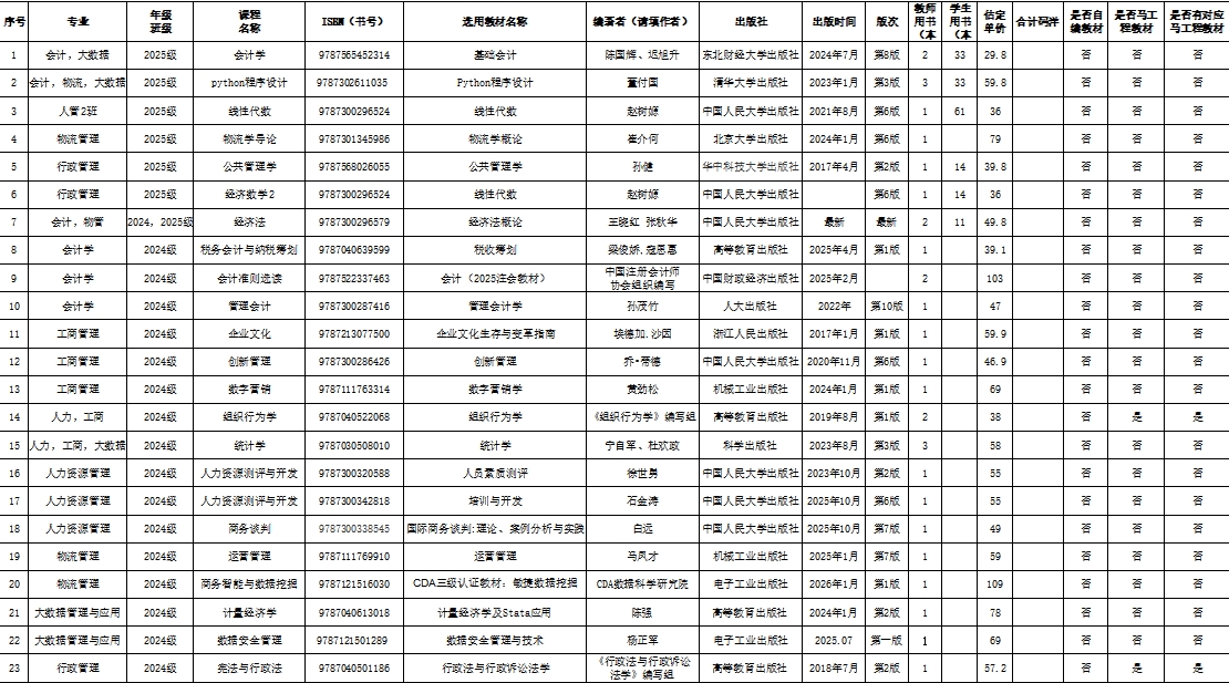 根据《365上市公司教学建设与管理办法》,学院按照相关程序选定了2026年春季学期本科生教材,现予以公示。