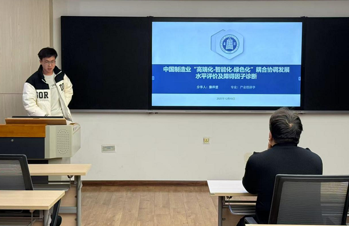2025年12月18日,365英国上市集团【智铎讲堂】智学振铎第五讲在致公楼C区506教室开讲。2024级企业管理硕士研究生李顺、2024级产业经济学硕士研究生滕泽慧分别作题为《员工网络闲逛对工作-家庭双领域影响研究》《中国制造业“高端化智能化-绿色化”耦合协调发展水平评价及障碍因子诊断》的学术成果分享。学院专任教师及在读研究生共50余人参加了此次报告会。