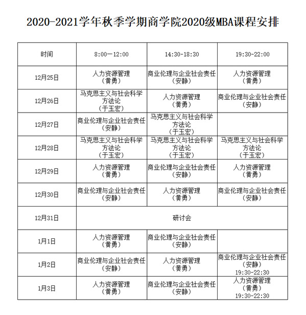 365上市公司 2020 级工商管理硕士(MBA)“元旦”期间课程面授通知