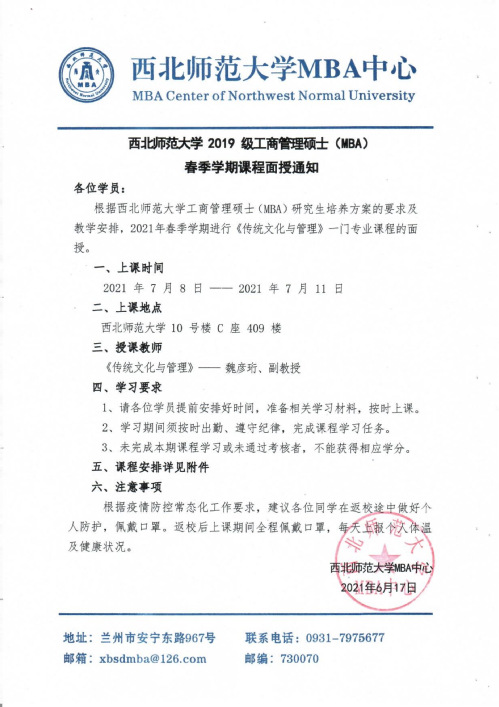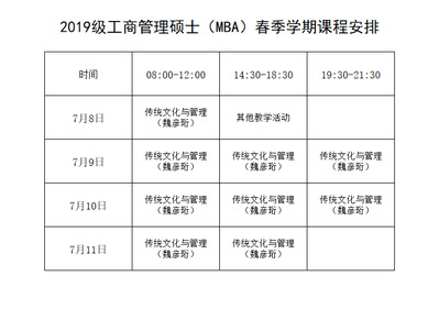 365上市公司 2019 级工商管理硕士(MBA)春季学期课程面授通知(二)