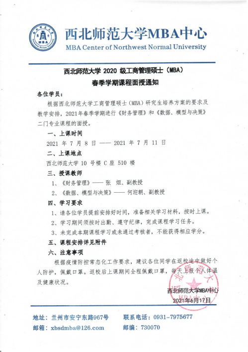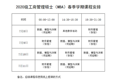 365上市公司 2020 级工商管理硕士(MBA)春季学期课程面授通知(二)