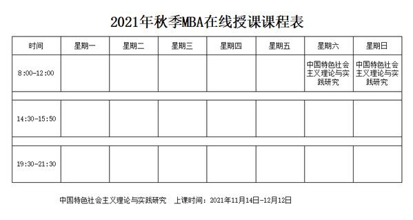 365上市公司商学院 2021 级工商管理硕士(MBA)2021年秋季课程在线授课通知