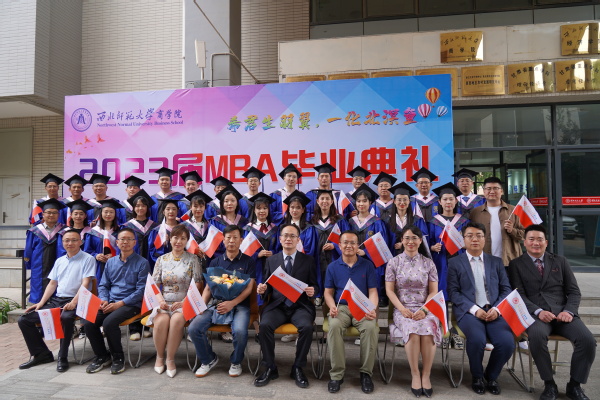 毕业典礼上,董青院长祝贺2023届MBA毕业生顺利毕业,希望同学们在未来的职业生涯和人生道路上谨记校训、院训,秉承西北师大MBA人的精神理念,成就自己的美好人生。张学鹏教授代表全院老师,为毕业生们表达了祝福,嘱托同学们要把握挑战与机遇,脱颖而出,成为商业精英,成就人生梦想,回馈社会和国家。校友代表吕兴邦祝福毕业生们多钱善贾、钟鸣鼎食、海阔天空、神采奕奕、龙马精神;毕业生代表戴维斌代表全体毕业生,表达了对学校、学院、老师的感谢和祝福。