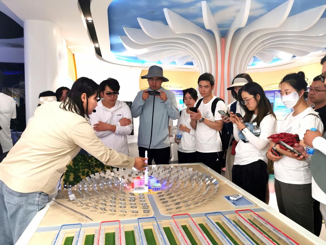 随后,学员们走进产业园,亲眼参观了由数以方计的镜子围成一个圆、围绕着260米高的熔盐塔逐日发电、被称为“超级镜子发电站”的光热发电站。感受了广阔的戈壁滩、丰富的光热、风力资源为敦煌创造的有利的光电、风电产业发展条件。