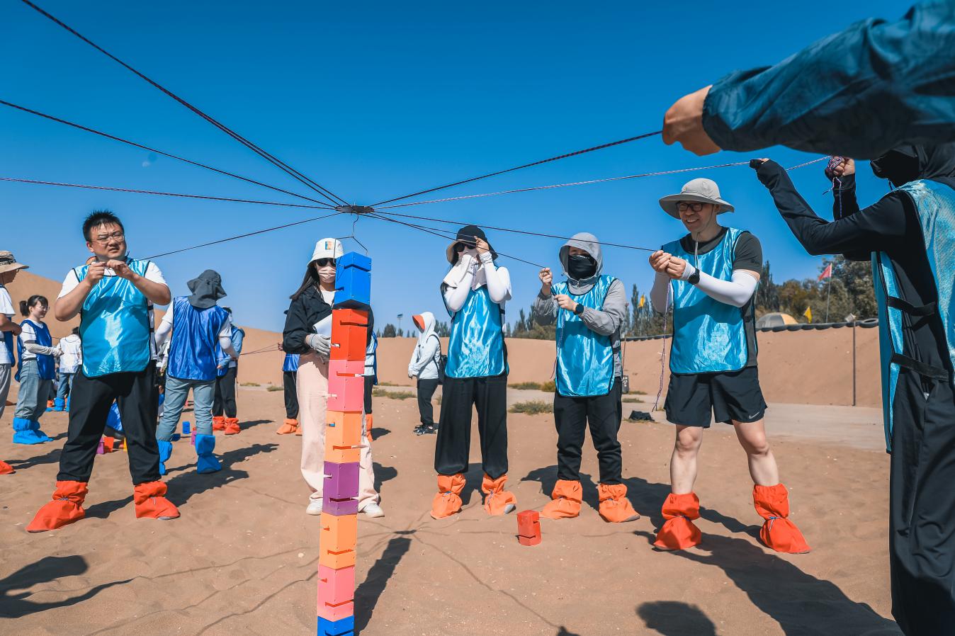 7月8日,在鸣沙山后麓,开展了沙漠特色的素质拓展训练。素拓过程中将所有学生分为十个团队,参加了驿站传书、两军博弈、百步穿杨和万丈高楼平地起等四个项目,并根据十个团队所有项目的团体总得分进行排名,设置奖项。活动中,学员们展现出卓越的团队合作能力和沟通协调能力,在竞争中不断挑战自我,追求卓越,涌现出一批勇于拼搏、决不言败的团队。