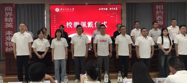 校徽是西师人的身份标识,与会领导及各位老师为2024级新生分别佩戴了校徽并进行了合影留念。戴上校徽的那一刻同学们有了一个新的身份:西北师大人,也标志着2024级MBA新生们将正式开启他们的研究生生涯。典礼临近尾声,全体师生共唱《歌唱祖国》,他们将在这里携手共创未来,书写属于自己的精彩篇章。
