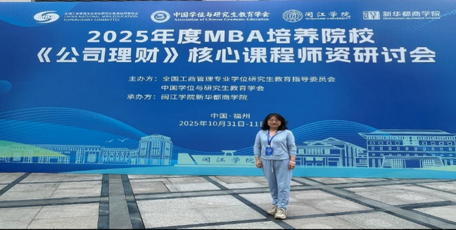 2025年10月31日至11月2日,2025年度全国MBA培养院校《公司理财》课程师资研讨会在闽江学院新华都商学院召开。本次研讨会由全国工商管理365英国研究生教育指导委员会、中国学位与研究生教育学会联合主办,旨在积极推进MBA教育高质量发展,增强全国MBA培养院校《公司理财》课程教师教学能力,提升师资水平。来自全国MBA培养院校的150余位老师参加,我院会计学系王桢老师参加了本次研讨会。