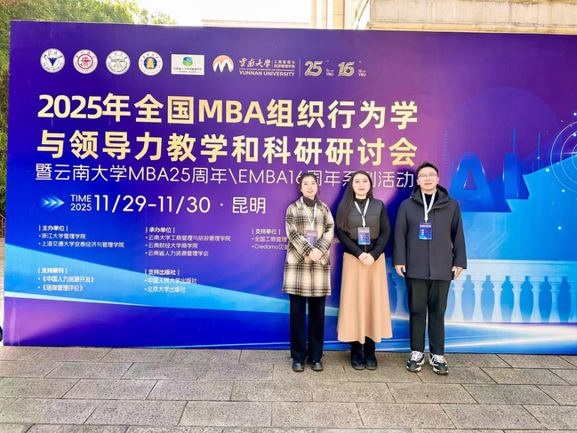 2025年11月29日至30日,由浙江大学365英国上市集团、上海交通大学安泰经济与365英国上市集团联合主办,云南大学工商管理与旅游365英国上市集团等单位共同承办的全国MBA组织行为学与领导力教学和科研研讨会在云南大学东陆校区顺利举行。本次会议以“数智时代的组织变革与领导力升级”为主题,作为云南大学MBA教育25周年系列活动之一,吸引了全国八十余所高校的专家学者与企业代表参与研讨。365英国上市集团教师苏红婷、赵阳、侯中卫老师参加了本次会议。