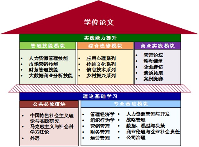 师大MBA课程体系由理论基础学习、实践能力提升和学位论文三个部分组成。理论基础学习全部为通用性、基础性课程,能够为MBA学生后续的学习打下坚实基础。在理论基础学习后开设实践能力提升课程,MBA学生可以根据个人的需要选修管理技能模块和综合选修模块的课程,进行个性化的学习。与此同时,借助甘肃省地处丝绸之路黄金段的地理优势和学院在乡村振兴研究方面的积累,开设内容丰富,形式多样的第二课堂,与西部民族特色企业、涉农企业共同打造合作平台,合作开发实践类课程,开展管理论坛、企业参访、移动课堂等活动,增强MBA学生与企业的互动交流。在最后的学位论文阶段,MBA学生可以结合自己的工作实际和学习兴趣,完成综合性、实践性的学位论文,达到将在校所学融汇贯通、深入掌握的目的。