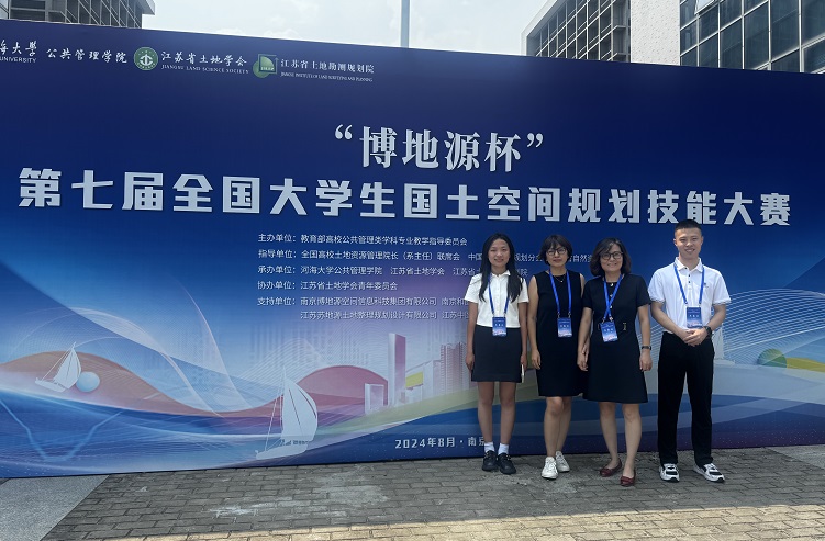 2024年8月25日,“博地源杯”第七届全国大学生国土空间规划技能大赛决赛在河海大学举行。由我院陈卉老师带队,刘春芳老师指导,郭颖喆、蔡玲等同学完成的作品《民兴绿洲梦,勤止风沙线——民勤县国土空间生态修复规划(2021—2035)》,在来自全国167支高校队伍的角逐中,顺利晋级决赛,最终获得一等奖。