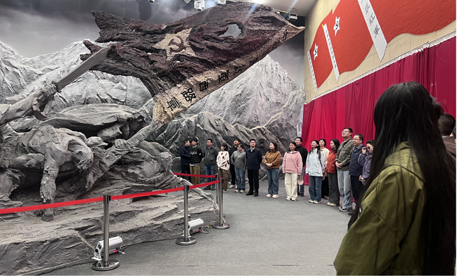 MPA师生一行,首先来到红西路军烈士陵园,瞻仰了由步枪、长矛与刺刀造型组成的纪念碑,向烈士墓敬献花篮。随后,参观了古浪战役纪念馆,通过珍贵文物、历史影像和场景复原,深入了解了1936年红军西路军在古浪三战的悲壮历史。