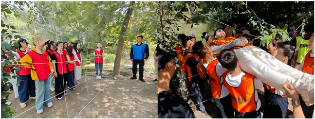 8米高的“高空断桥”,给同学们尤其是女生带来了很大的内心挑战,但在队友的鼓励下,大家逐个迈出关键一步。一名同学感慨地说:“站在高处时,腿抖得厉害,但听到下面的呐喊声,突然觉得恐惧可以被战胜。”最终,全员成功完成挑战,深刻体会到“困难往往源于自我设限,勇气才是突破的钥匙”。