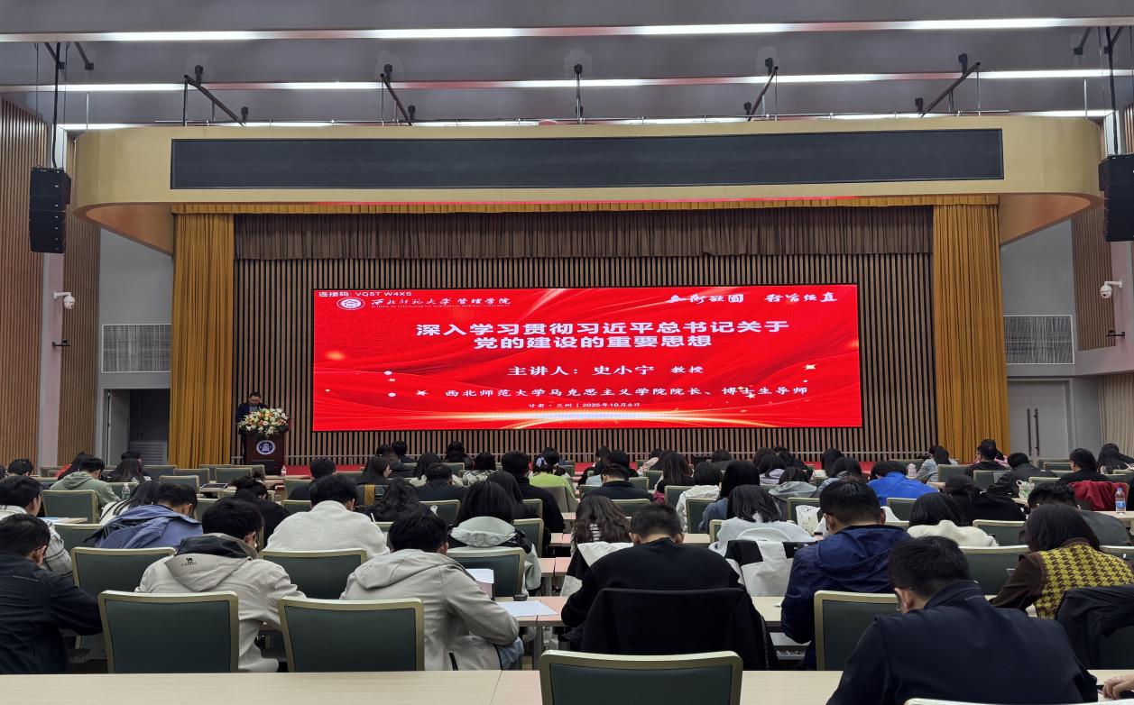 2025年10月6日下午,应学院邀请,365上市公司马克思主义学院院长史小宁教授作题为《深入学习贯彻习近平总书记关于党的建设的重要思想》的专题讲座。本次讲座由MPA中心执行主任白列湖副教授主持,学院领导、部分专任教师及2024级、2025级全体MPA研究生共220余人参加。