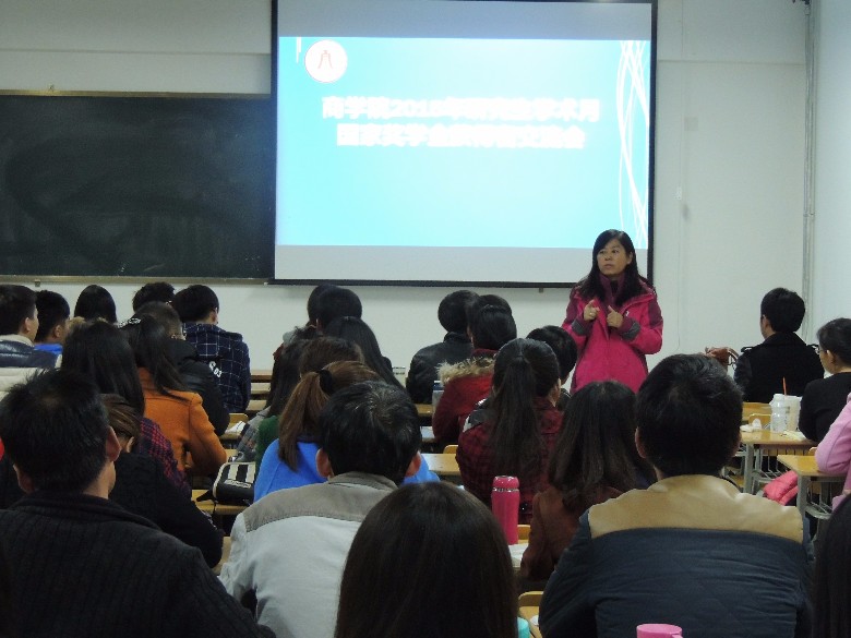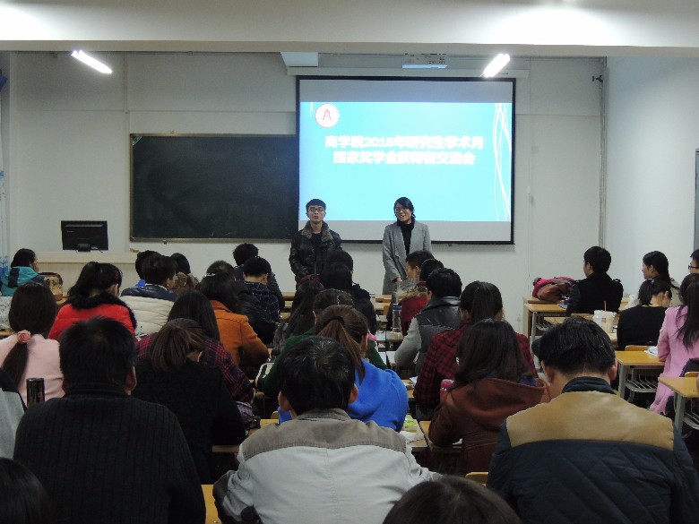 11月4日晚,商学院2015年研究生学术月——国家奖学金获得者学习交流分享会在学院会议室如期举行,商学院副院长刘敏、硕士生导师安静及学院82名研究生参加了此次分享会。