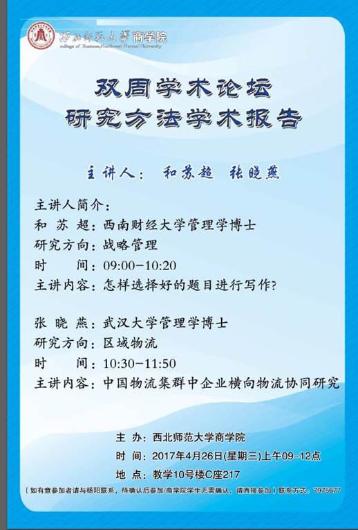 学术报告‖双周学术论坛——和苏超博士、张晓燕博士