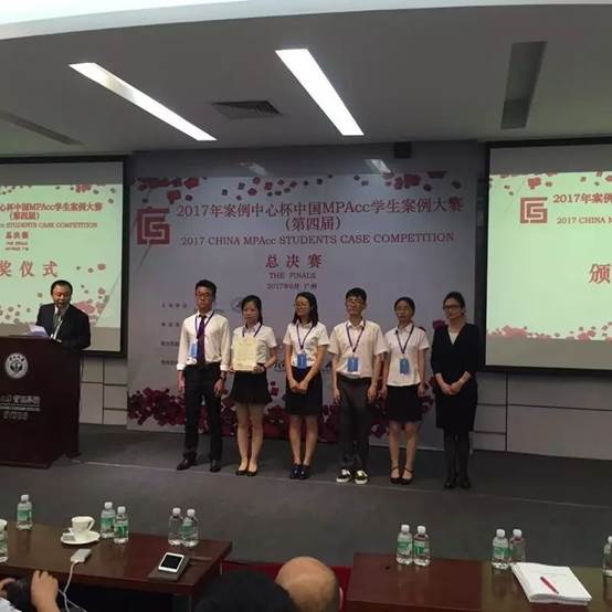 2017年(第四届)中国MPAcc学生案例大赛复赛于2017年6月12日在中山大学举办落下帷幕。我院代表队“帅帅队”战胜实力强劲的西南财经大学代表队,顺利挺进总决赛。