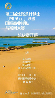 7月2日,由丝路会计联盟举办,宁夏大学承办的“第二届国际商业模拟与案例大赛”圆满落幕。比赛现场宣布获奖结果,由张烜老师和狄湛老师共同指导,2022会计专硕学生刘红、杨烁烁、王芳雨、赖綦康组成的365上市公司代表队荣获总决赛一等奖。